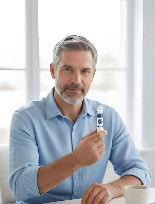 Ao contrário das cápsulas de ação lenta ou das soluções rápidas e enganadoras, o Inalador Nasal Menpure Complex promove a saúde masculina de forma natural, através de uma rápida absorção nasal e de um complexo comprovado de ingredientes ativos à base de plantas. Ajuda a restaurar a energia, a promover a saúde da próstata e do coração e a melhorar a clareza mental, tudo isto num inalador discreto e sem comprimidos que se integra perfeitamente na sua rotina.